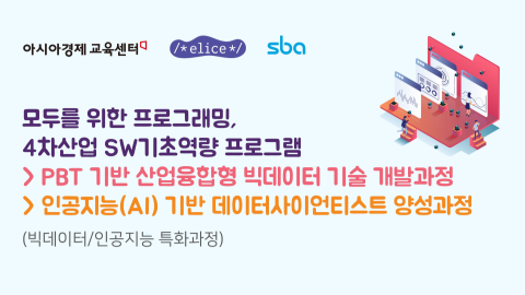SBA에서 ‘4차산업 SW기초역량 아카데미’ 빅데이터/인공지능 특화과정을 모집합니다.