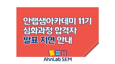 안랩샘아카데미 11기 심화과정 선발 발표를 다음과 같이 연기합니다.