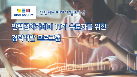 최근 1월15일(금) 수료식을 개최한 안랩샘아카데미 11기 수료자를 위한 경력개발 지원 프로그램을 놓치지 마시고, 유익한 경제활동 및 경력개발 기회로 적극 활용하시기를 바랍니다! ^^