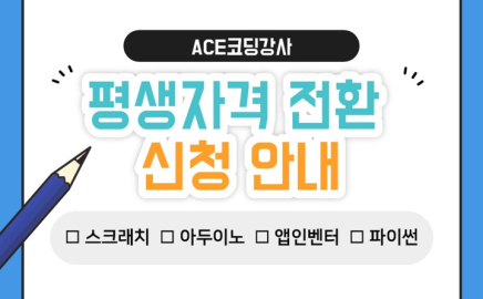 ◎ ACE코딩강사 자격증을 취득하신 분들을 위한 제9회 평생자격 전환 신청을 다음과 같이 안내 드립니다.