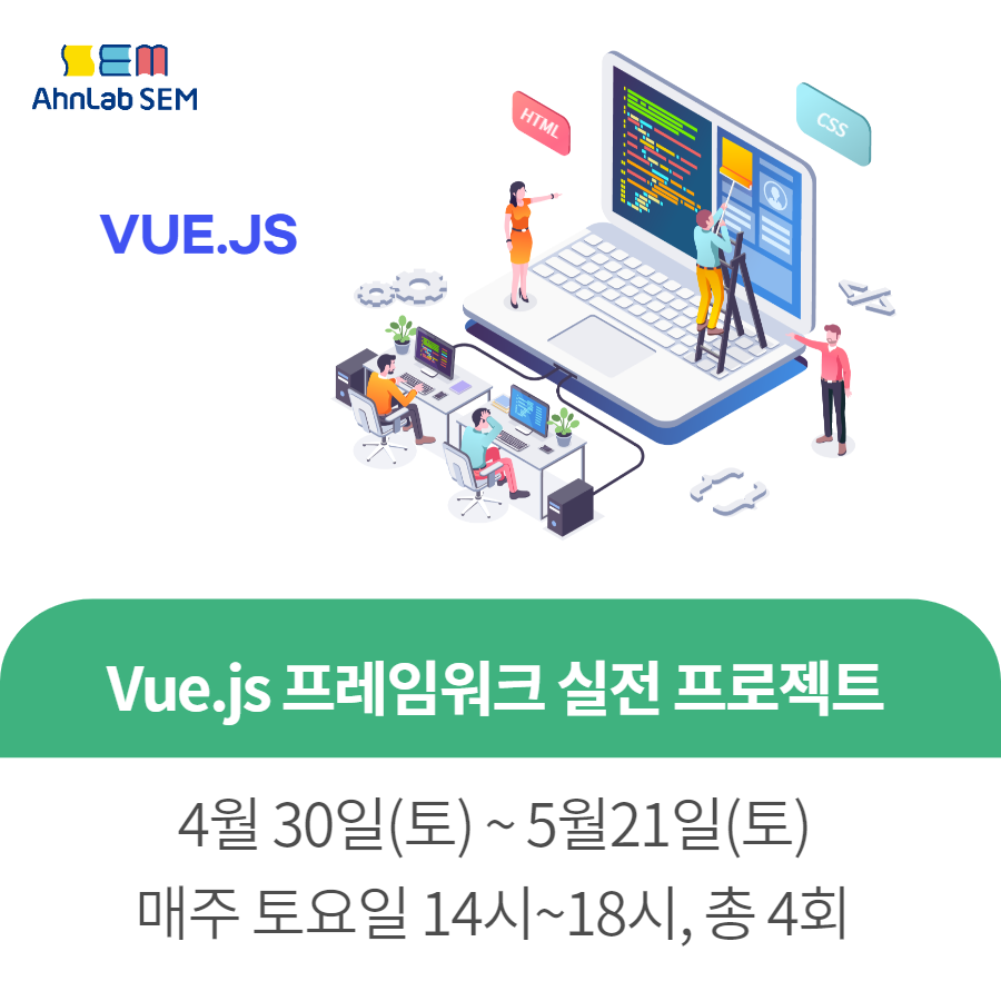 4월 23일부터 개강하는 “VUE.JS 실전프로젝트/ UXUI 디자이너 실전프로젝트/ 데이터(분석)마케팅/ SW개발 프로젝트 관리 방법론” 4개의 과정에 모집 기간을 1주 연장합니다.