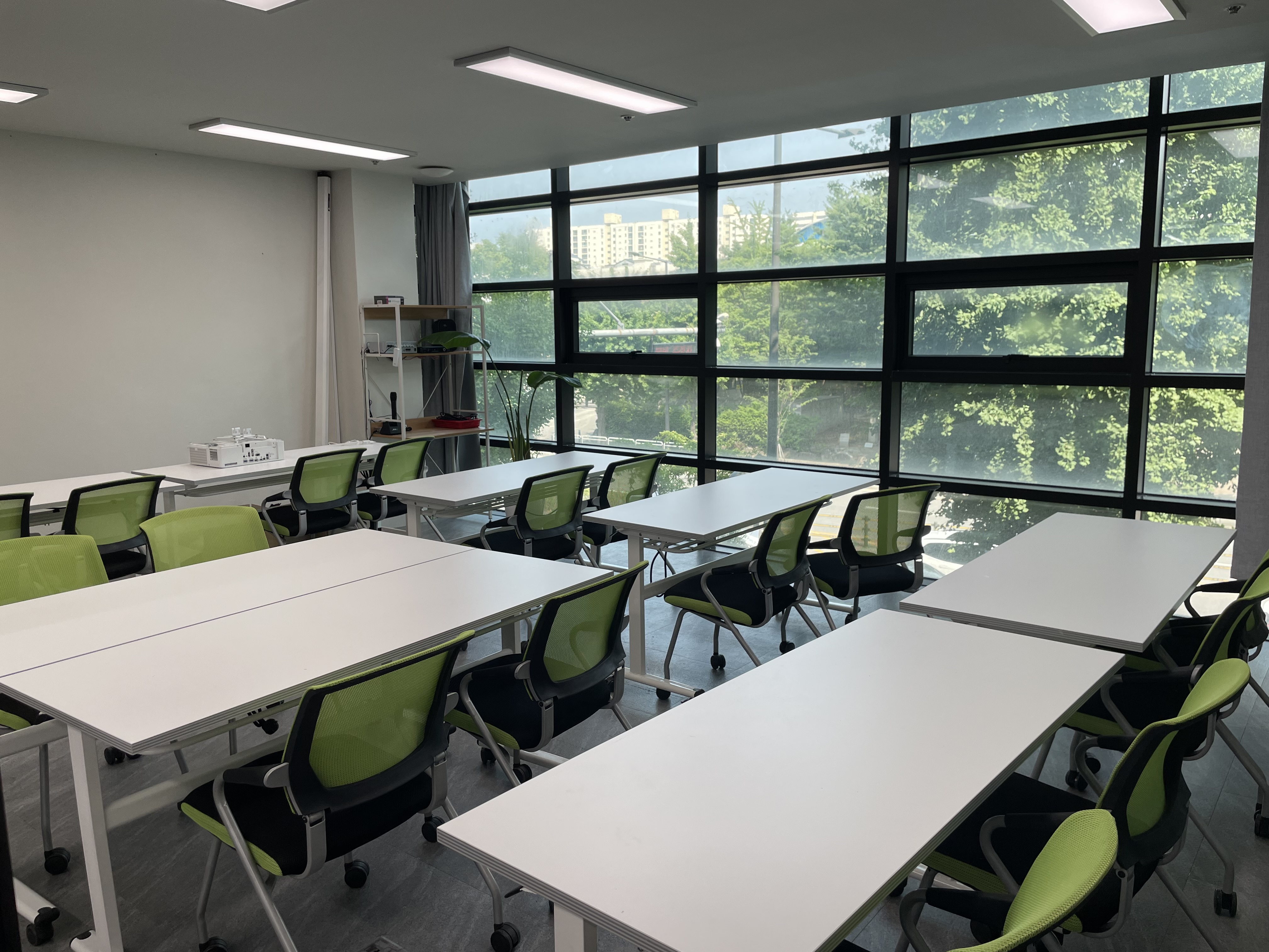 강의실2보다는 조금 작지만, 큰 창이 있어서 활기차게 수업을 들으실 수 있답니다.