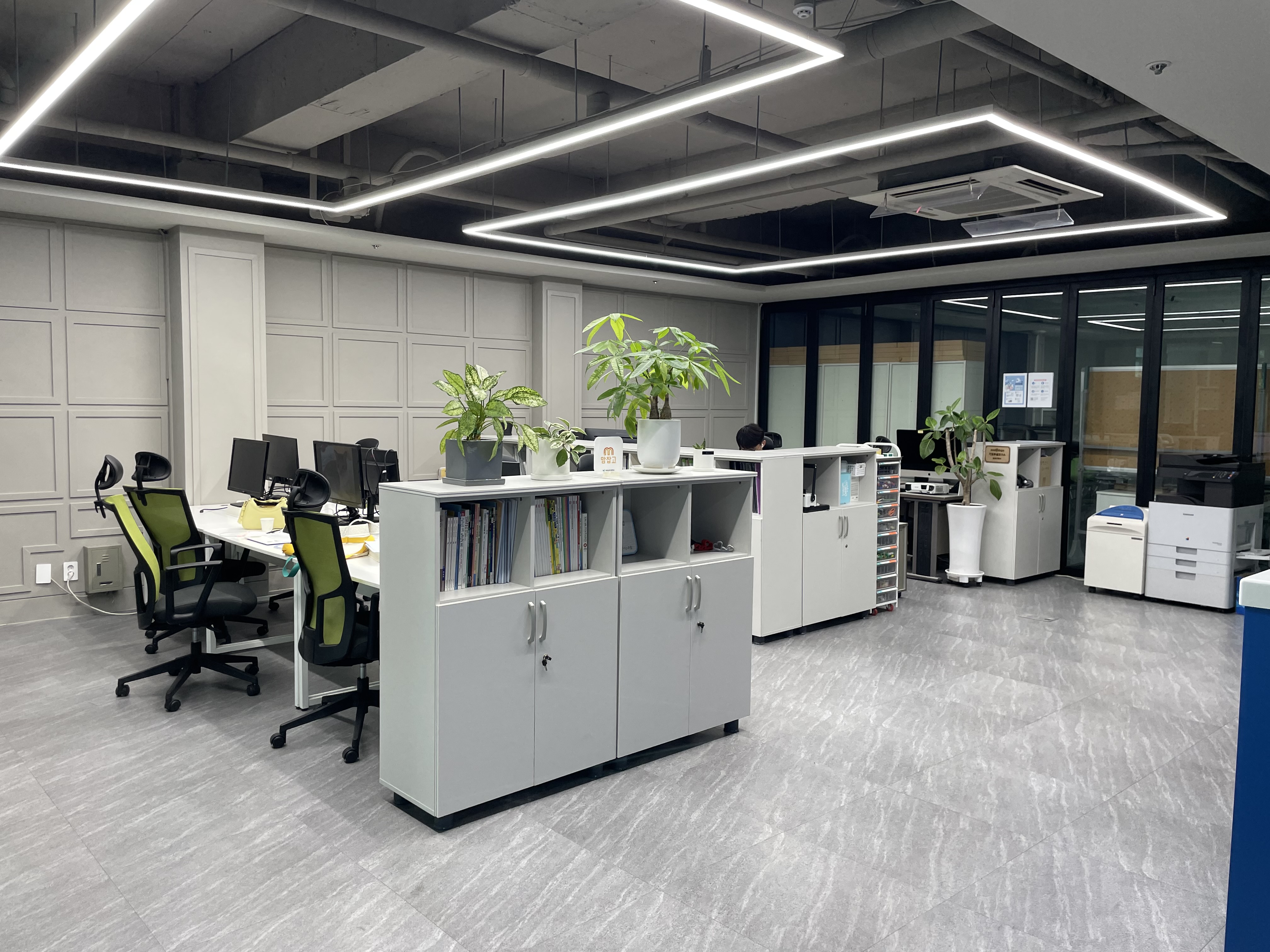 참고로 뒤쪽으로 보이는 곳은 대표실입니다. 대표님과 이야기를 나눌 수 있는 자리도 마련되어 있답니다.