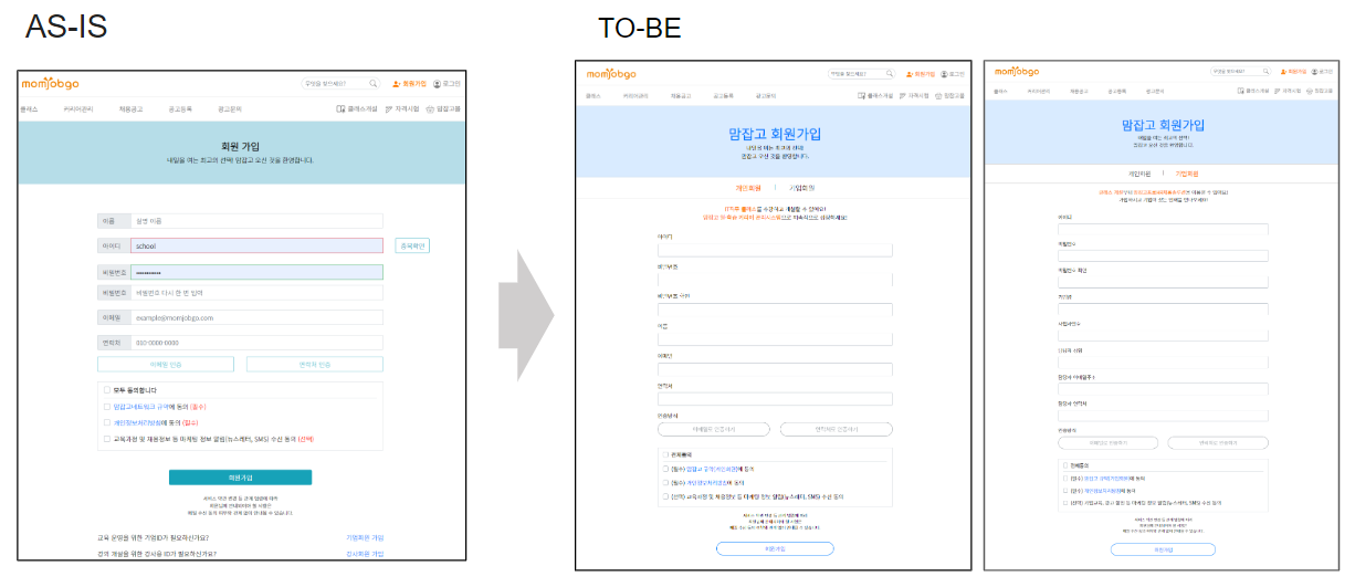 개인회원과 기업회원의 회원가입창을 분리했습니다.