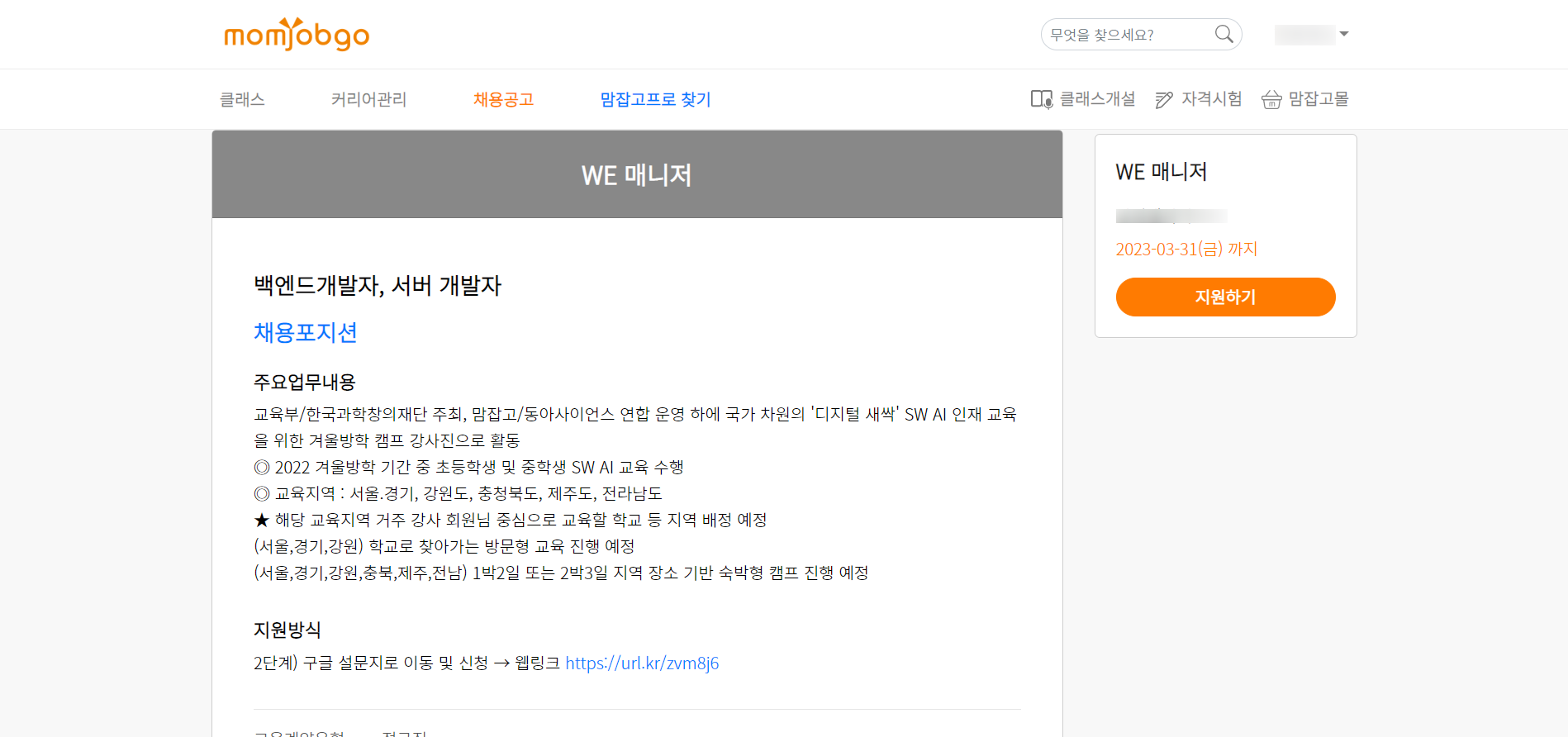 채용공고에 지원하기 기능이 업데이트되었습니다.