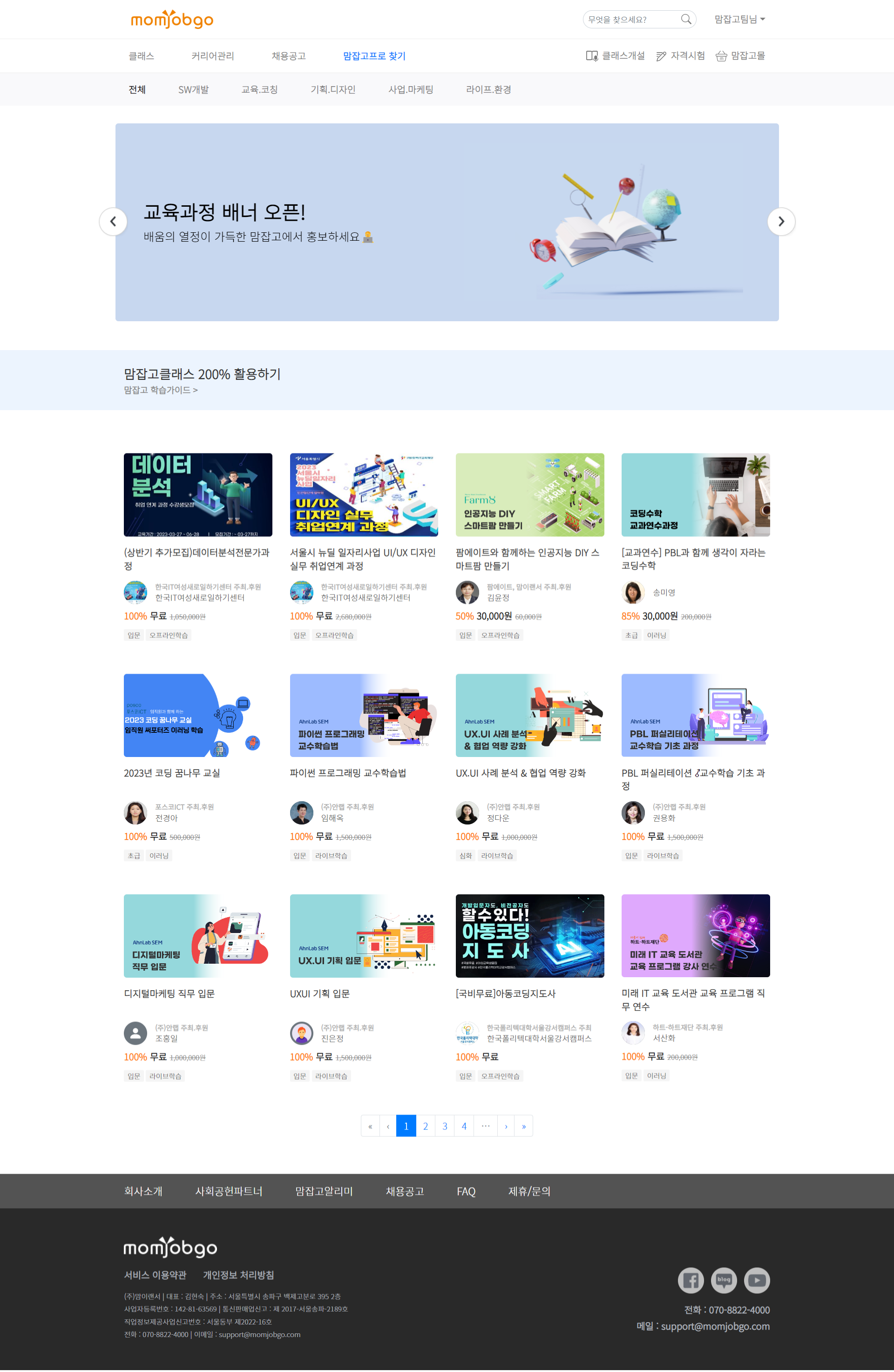 클래스 페이지 상단에 교육과정 배너가 새 광고상품으로 오픈되었습니다.