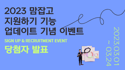 2023 맘잡고 지원하기 기능 업데이트 기념 이벤트에 참여해주셔서 감사합니다.