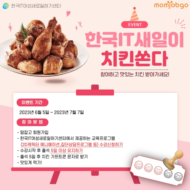 한국IT새일이 치킨 쏜다! 한국IT새일센터X맘잡고 이벤트 (6/5~7/7)