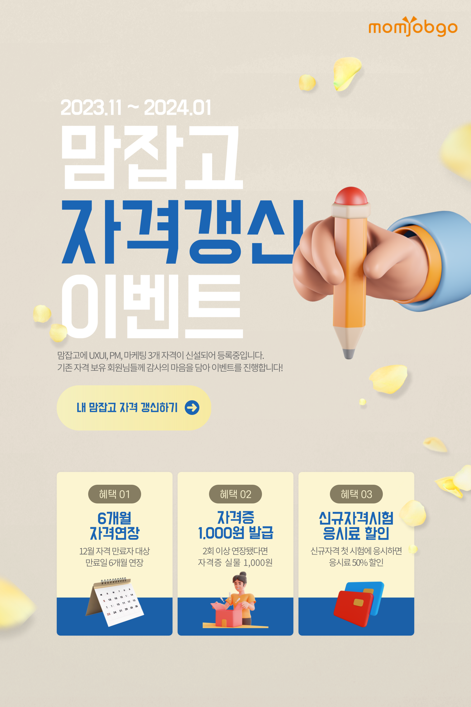 기존 자격 보유 회원님들께 감사의 마음을 담아 이벤트를 진행합니다!