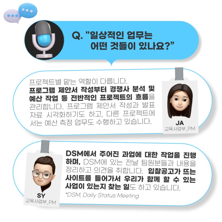 이번 주는, 교육사업부 PM분들의 이야기 입니다. 🙂