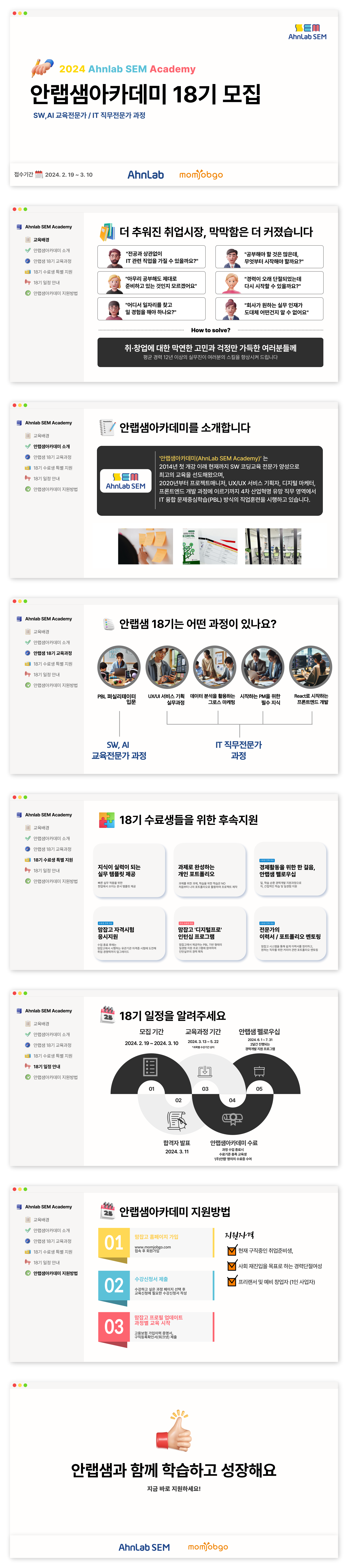 ☎️ 수강문의 : 안랩샘아카데미 운영사무국/ (전화) 070-8822-4000, (이메일) jsm@momjobgo.com