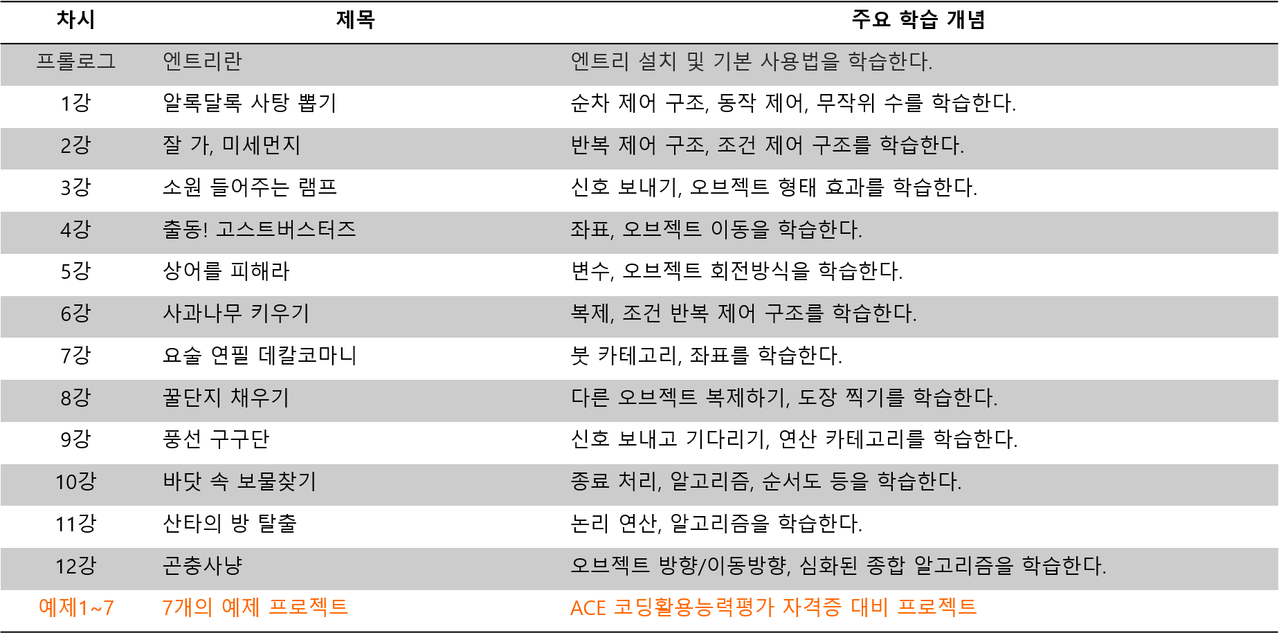 - 활용교안 : 생각팡팡 코딩교실 with 엔트리 12강 분량을 압축하여 진행