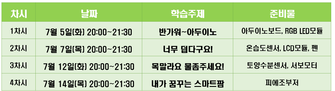 아두이노 키트 준비가 가능한 학생들을 대상으로 합니다.