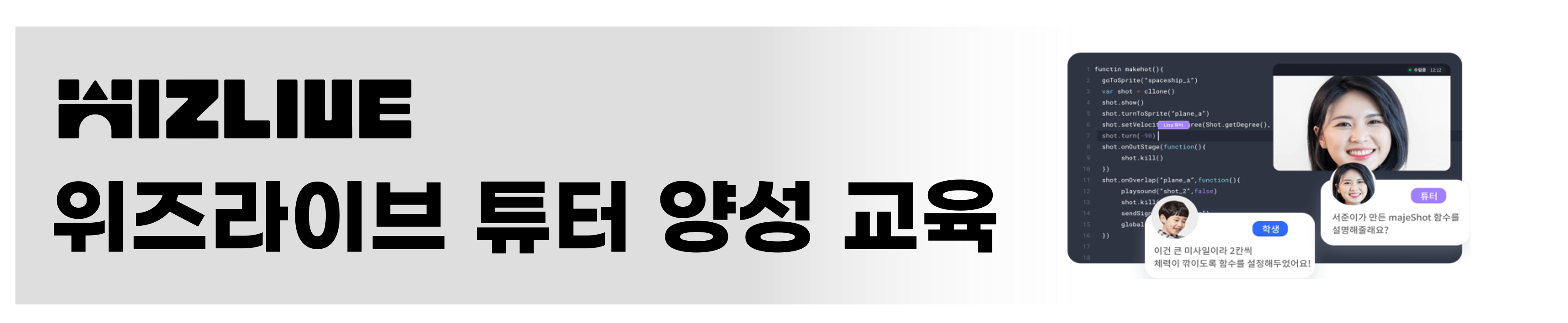 해당 클래스는 위즈라이브 온라인 화상 코딩 수업 튜터 강사에 지원하고, 면접에 합격하신 분들을 위한 교육 과정입니다. :)