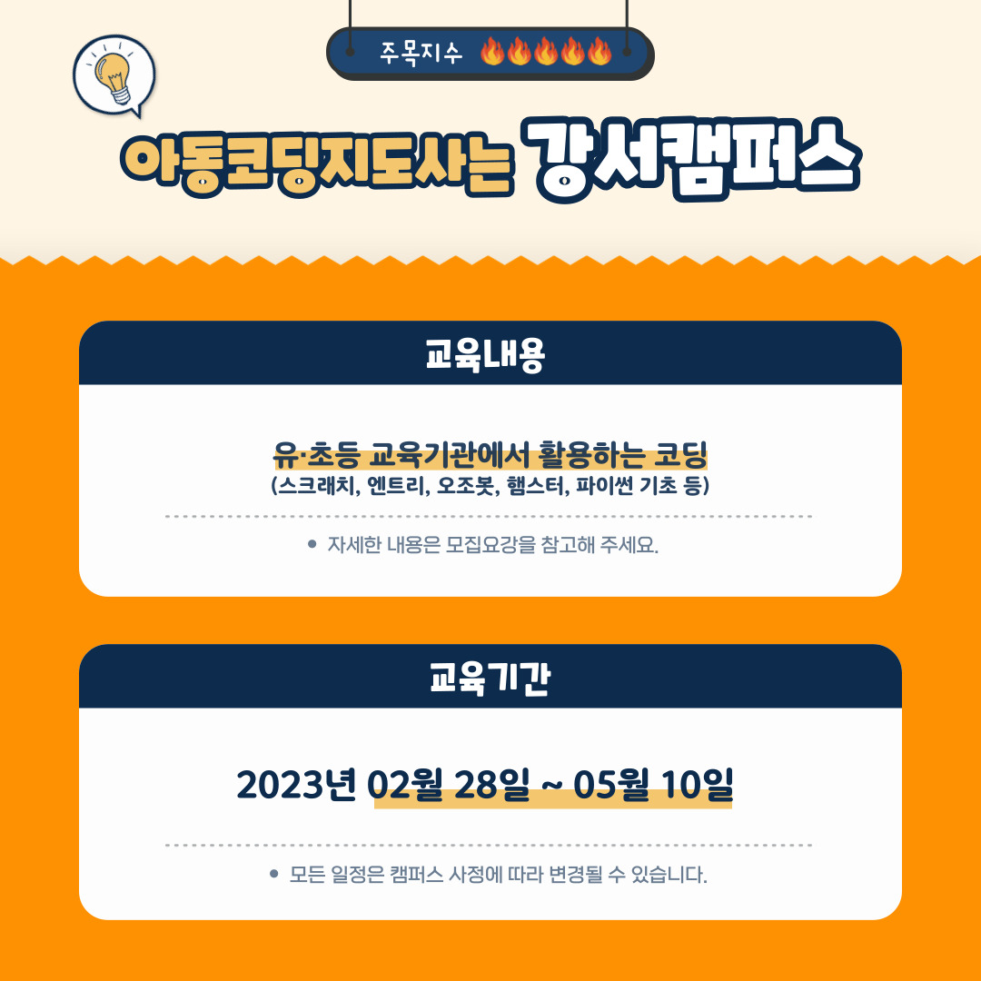 ■교육내용 : 유·초등 교육기관에서 활용하는 코딩을 체계적으로 가르치고 컴퓨터 사고능력을 향상시킬 수 있는 교육 강사 양성