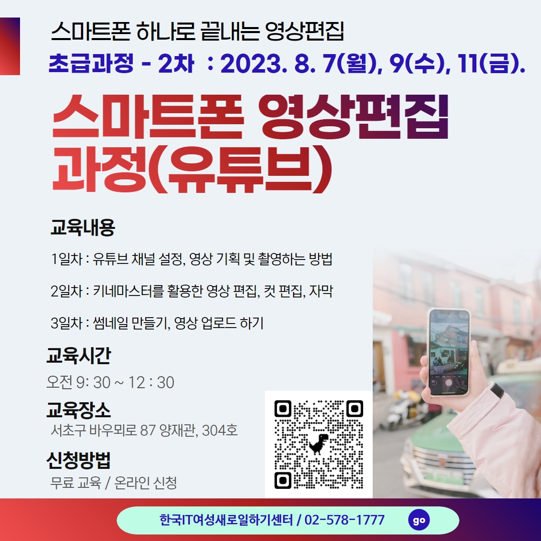 교육기간 : 8월 7(월), 9(수), 11(금) - 3일간 진행