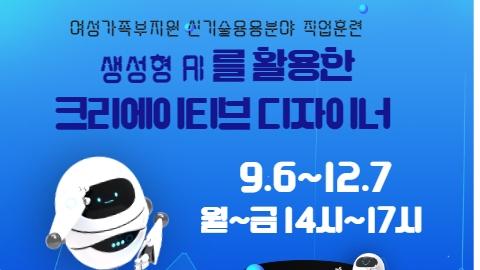 요즘 관심이 높아지고 있는 AI.. 그 중에서도 이미지 생성형 AI 프로그램을 활용한 디자인 실무과정을 직업훈련으로 진행합니다!