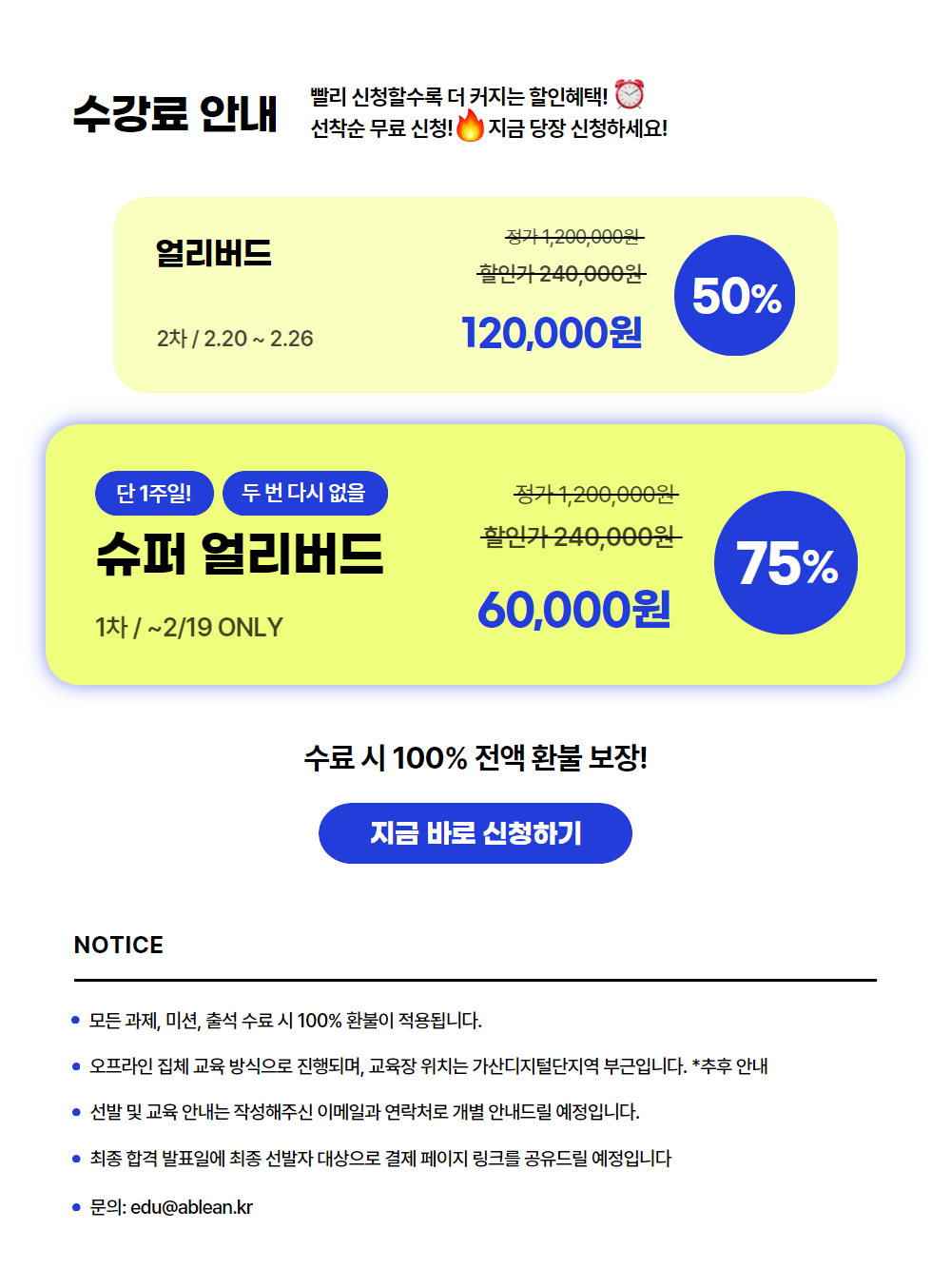 ** 얼리버드 할인 중! (~2/26) 바로 신청하러 가기**