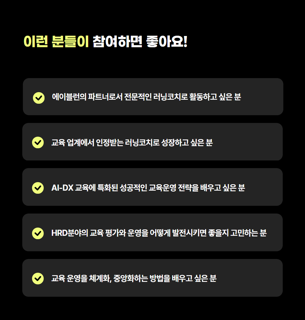 수강대상 러닝코치, 퍼실리테이터, 교육운영전문가, 프로젝트매니저