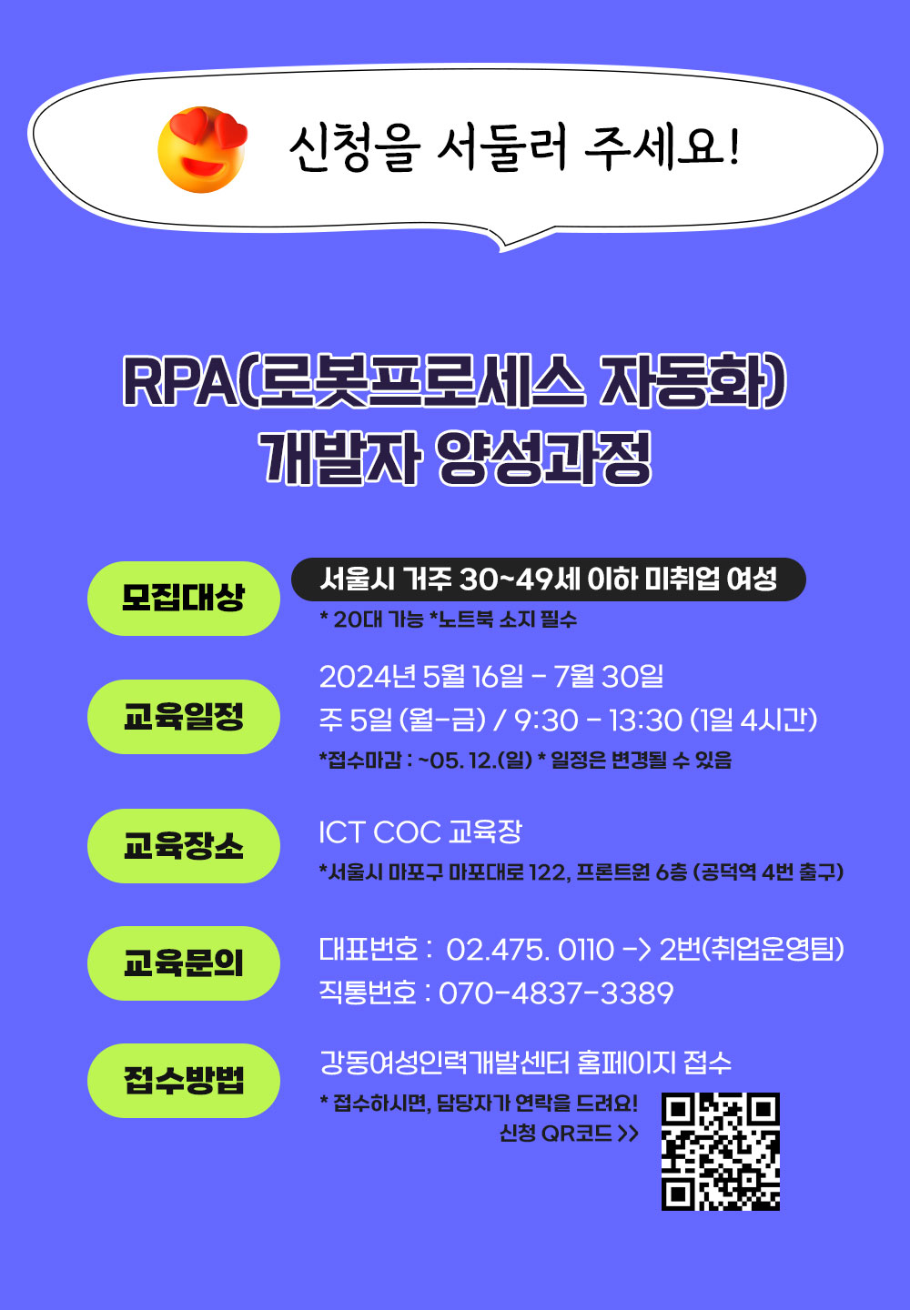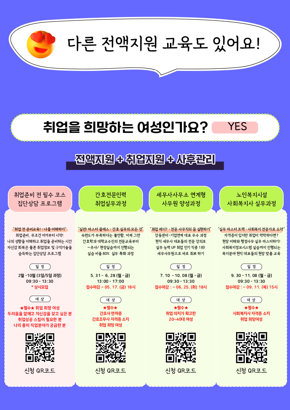 수강대상 서울시 거주, 3040 취업희망여성 (20대도 가능)