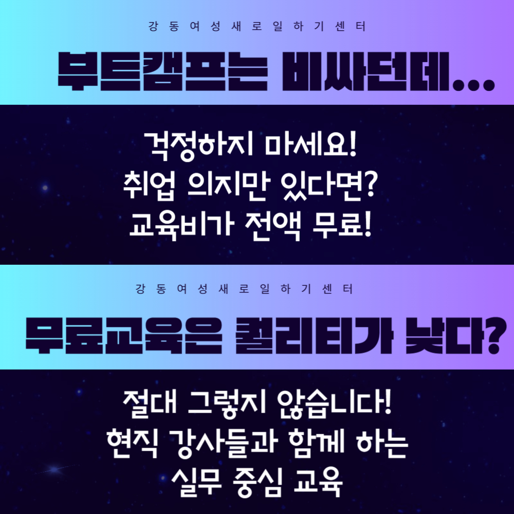 - 비전공자도 쉽게 접근 할 수 있는 교육 과정으로 수료 후에도 지속적인 관리를 통해 취업연계 및 창업이 가능