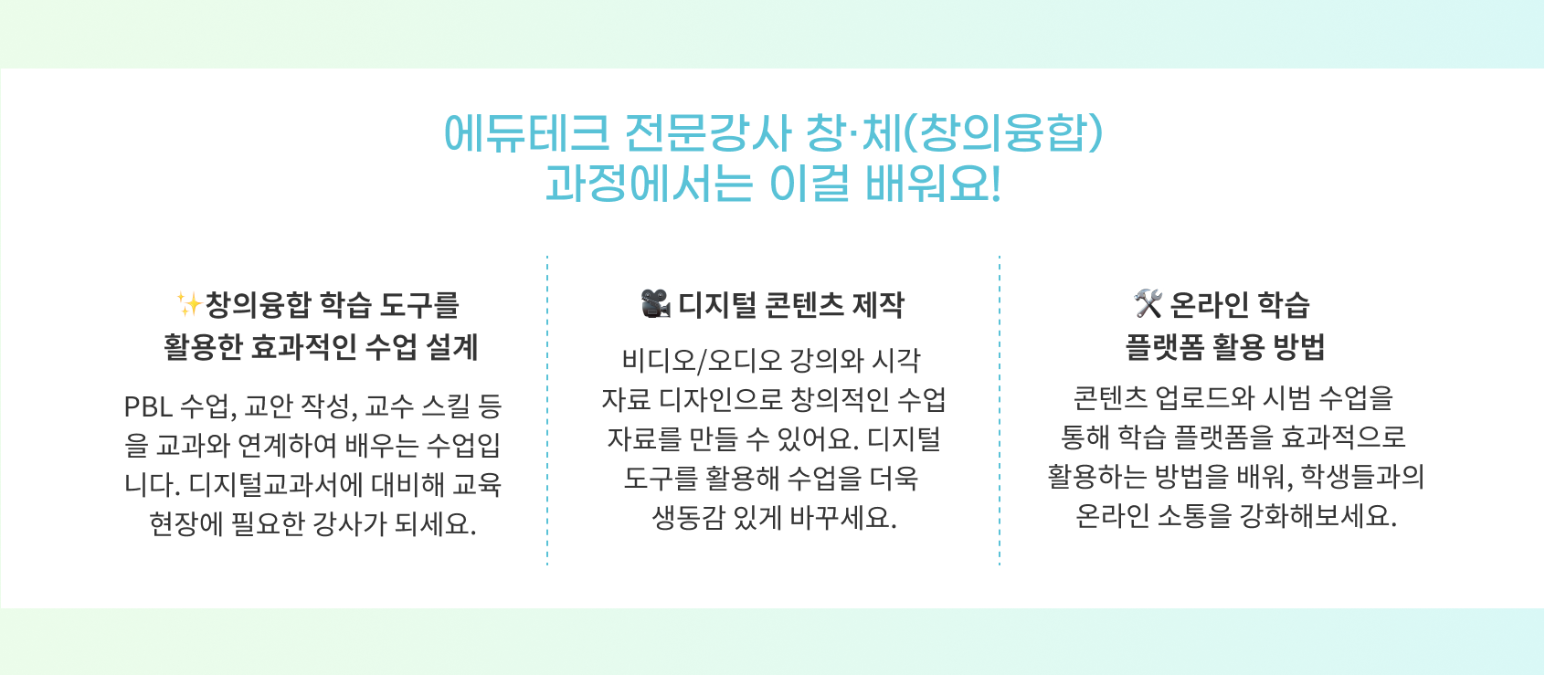 에듀테크 전문강사 창·체(창의융합) 과정은 디지털 학습 도구에 창의적체험활동 교과를 결합해