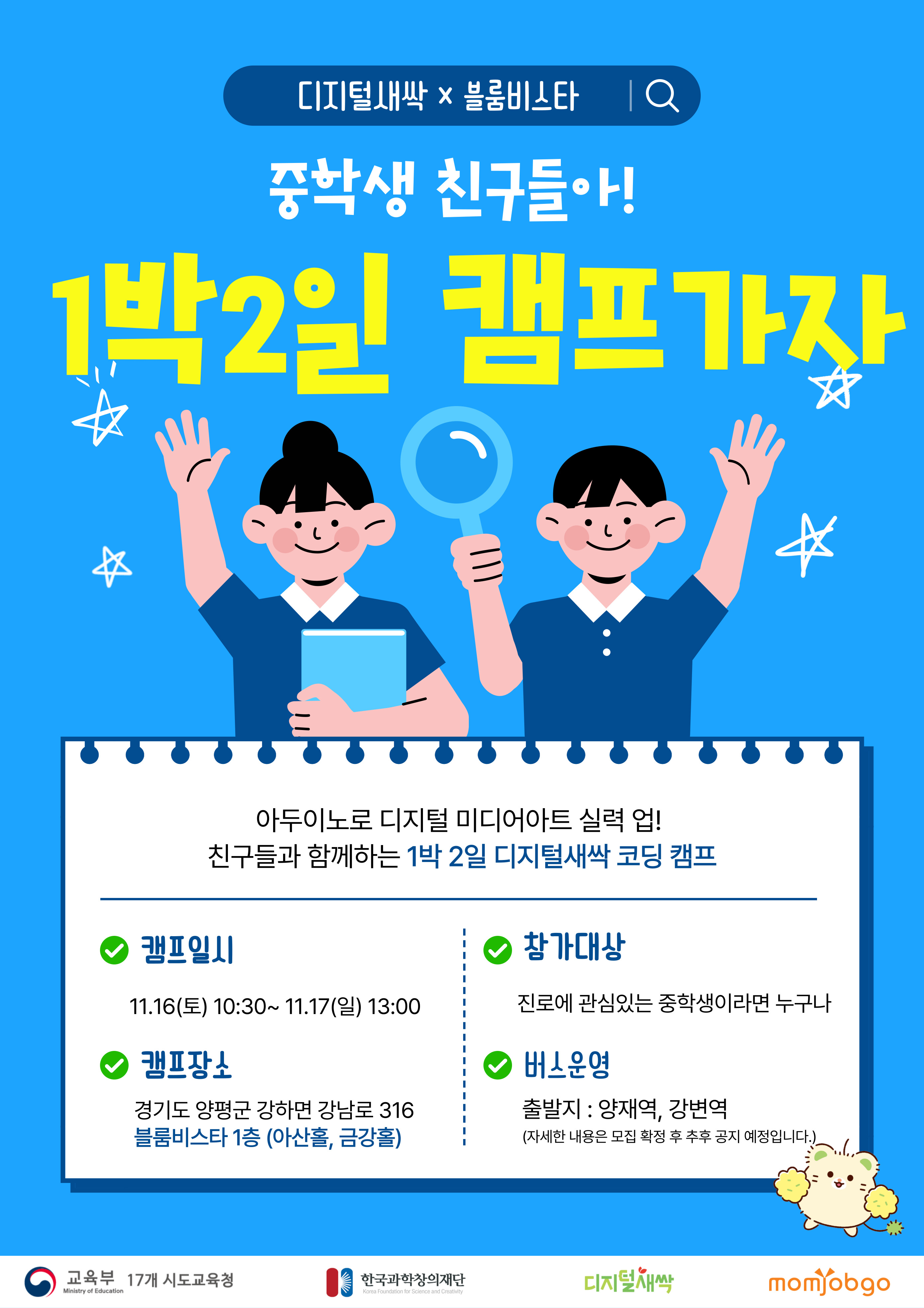 5. 참가비 : 전액 무료 (교육기기 대여 및 숙식 제공, 간식 제공)