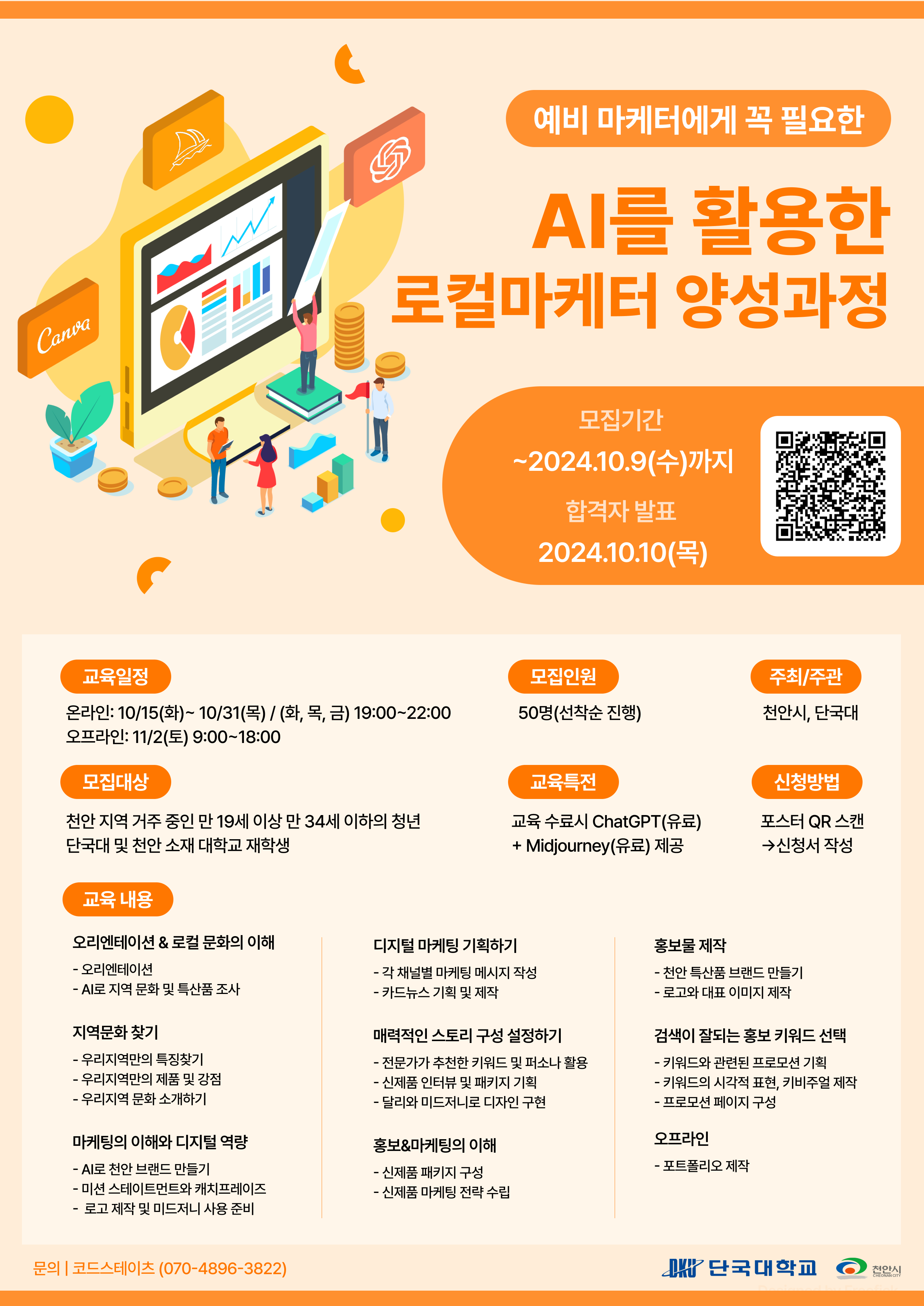 천안시와 단국대가 함께 천안 지역 청년들을 위한 AI를 활용한 마케팅 교육을 개최합니다! 🙌