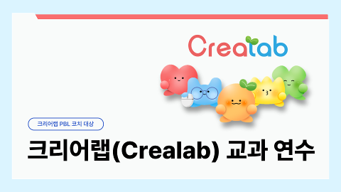1. 대상 : ‘크리어랩(Crealab)’ PBL 코치 대상 교과 연수 이며, 해당되지 않으신분은 수강이 제한됩니다.