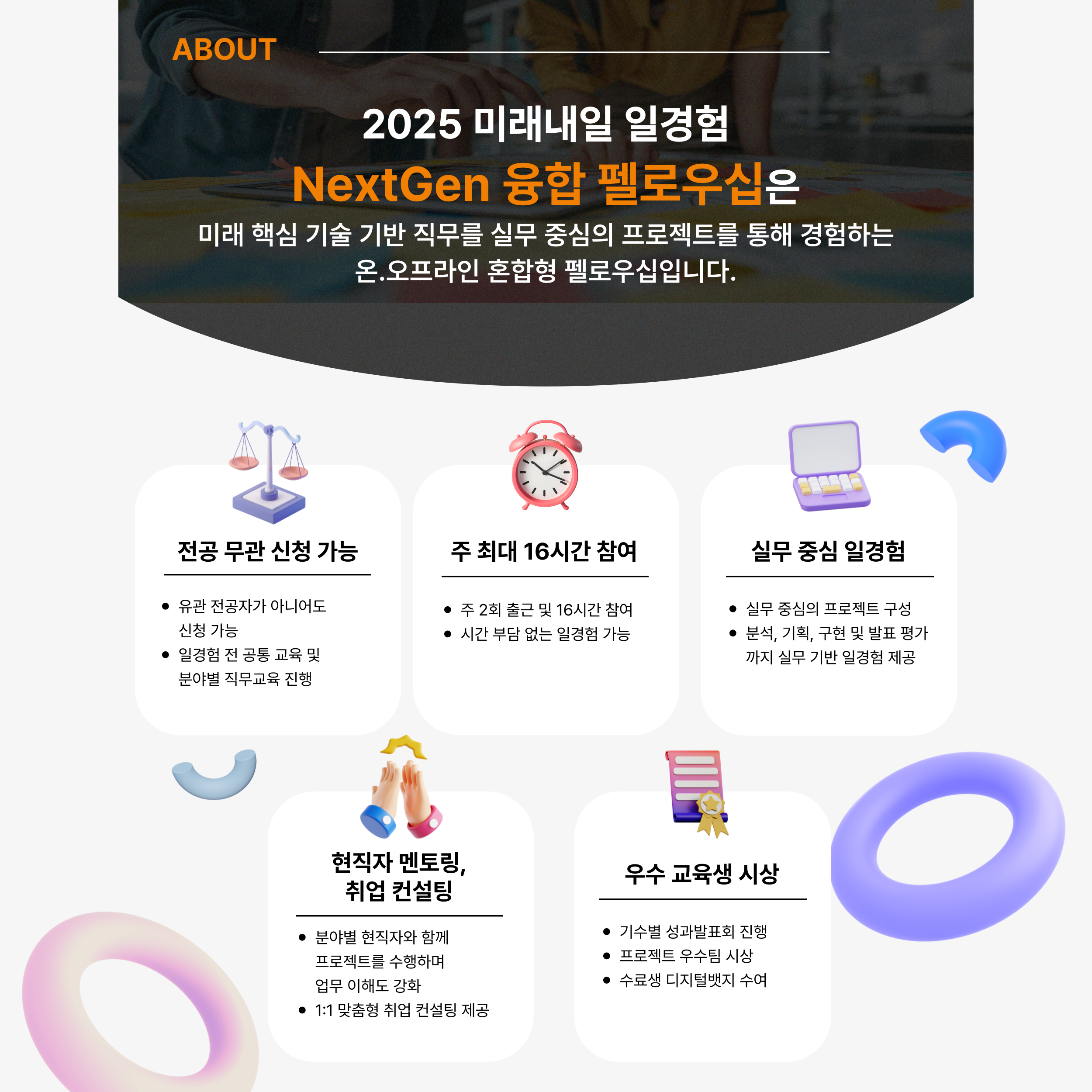 미래 핵심 기술 기반 직무를 실무 중심의 프로젝트를 통해 경험할 수 있는 온.오프라인 혼합형 일경험 프로그램입니다.