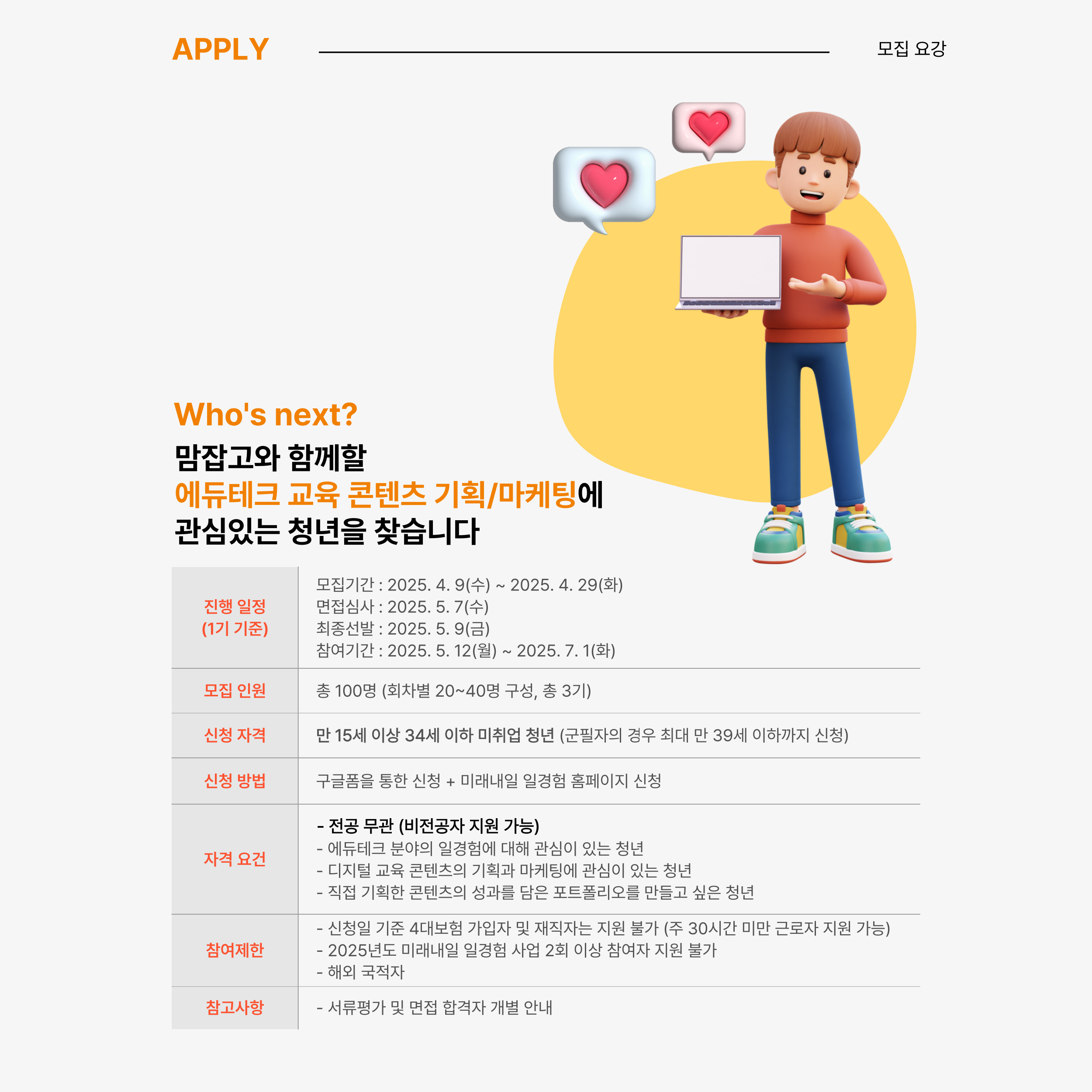 ■ 모집기간 : 2025년 4월 9일(수) ~ 4월 29일(화)