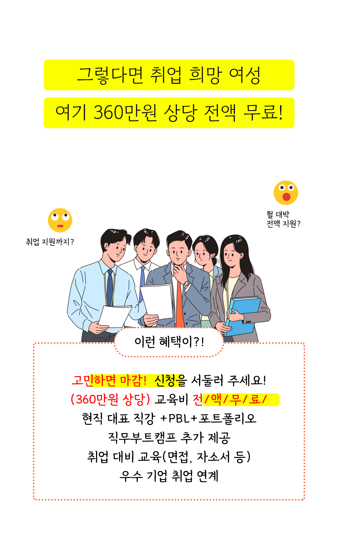 360만원 상당 교육비 전액 무료 (진짜)교육받고 취업까지 함께 하실 분을 찾습니다!
