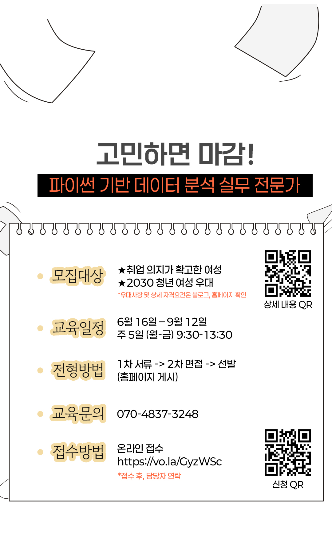 [무료] 파이썬 기반 데이터 분석 실무 전문가 (국비지원 실무+취업패키지)