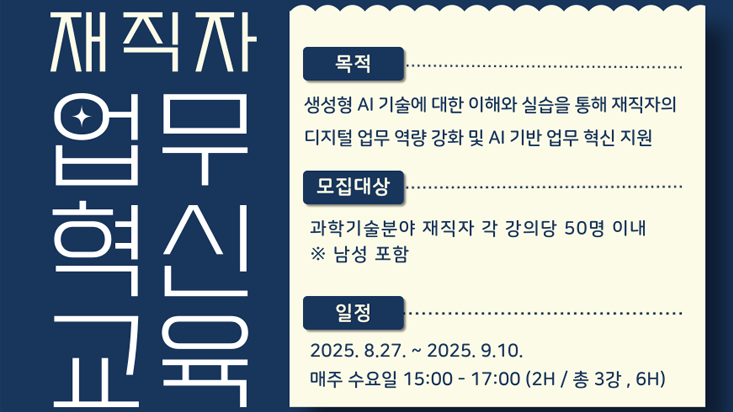 - 대상: 과학기술분야 재직자 50명 이내 (강의당)