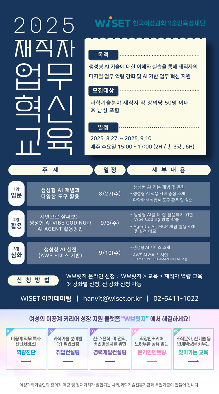 WISET 아카데미팀 02-6411-1022 , hanvit@wiset.or.kr