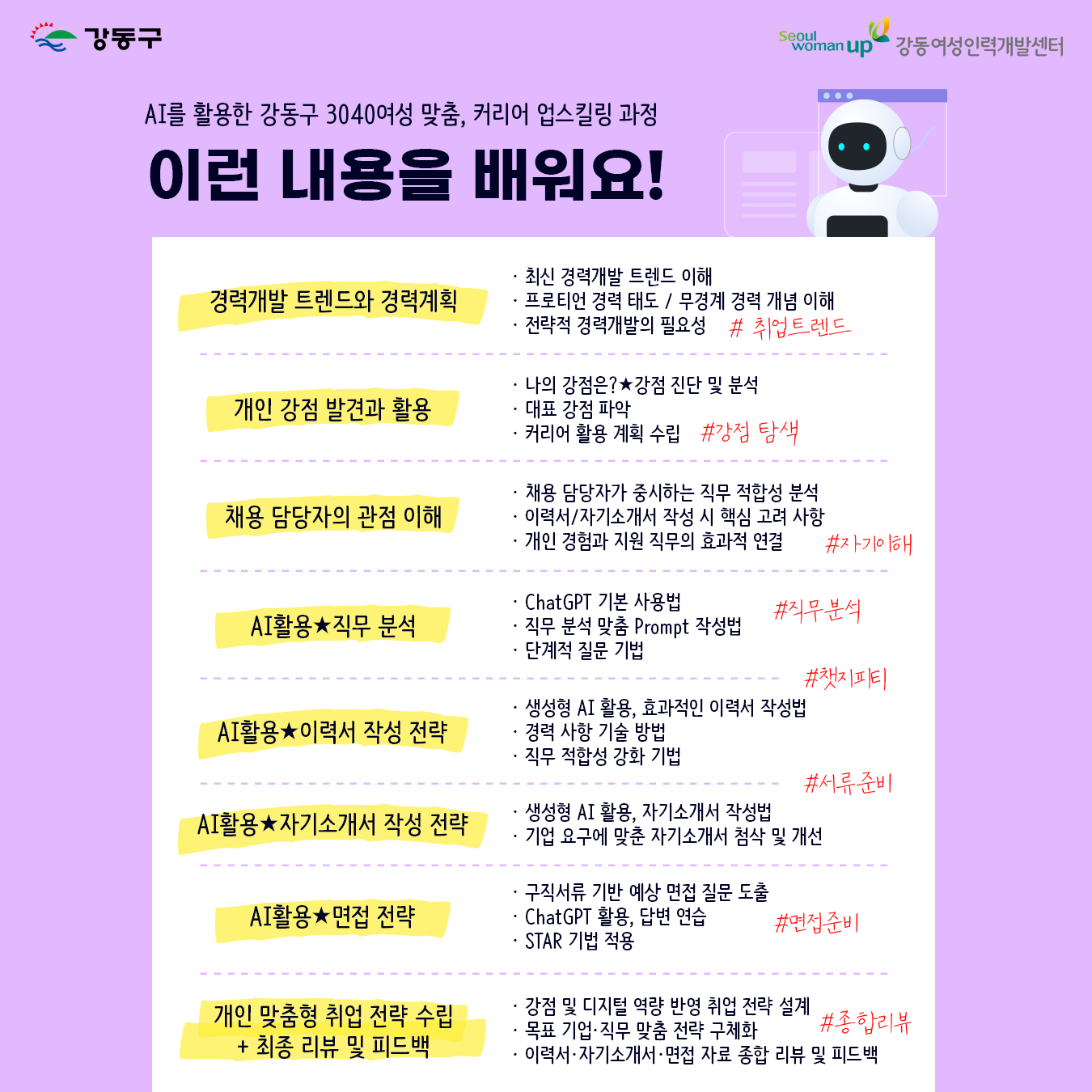 수강대상 강동구 3040 취업 희망 여성