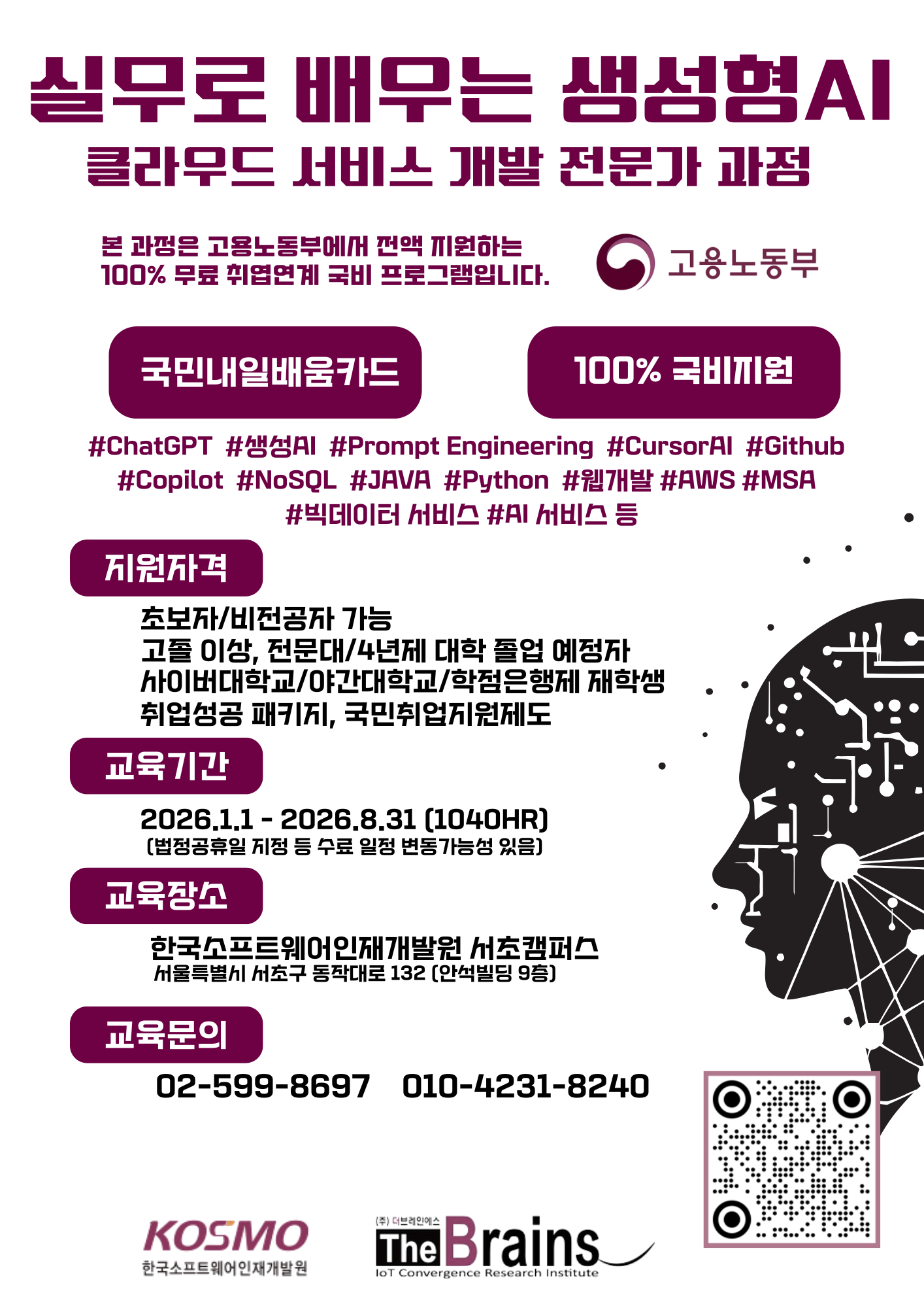 취업/대학원 진학을 준비하는 분들을 위한 실무로 배우는 생성형 AI 클라우드서비스 개발자 과정입니다.